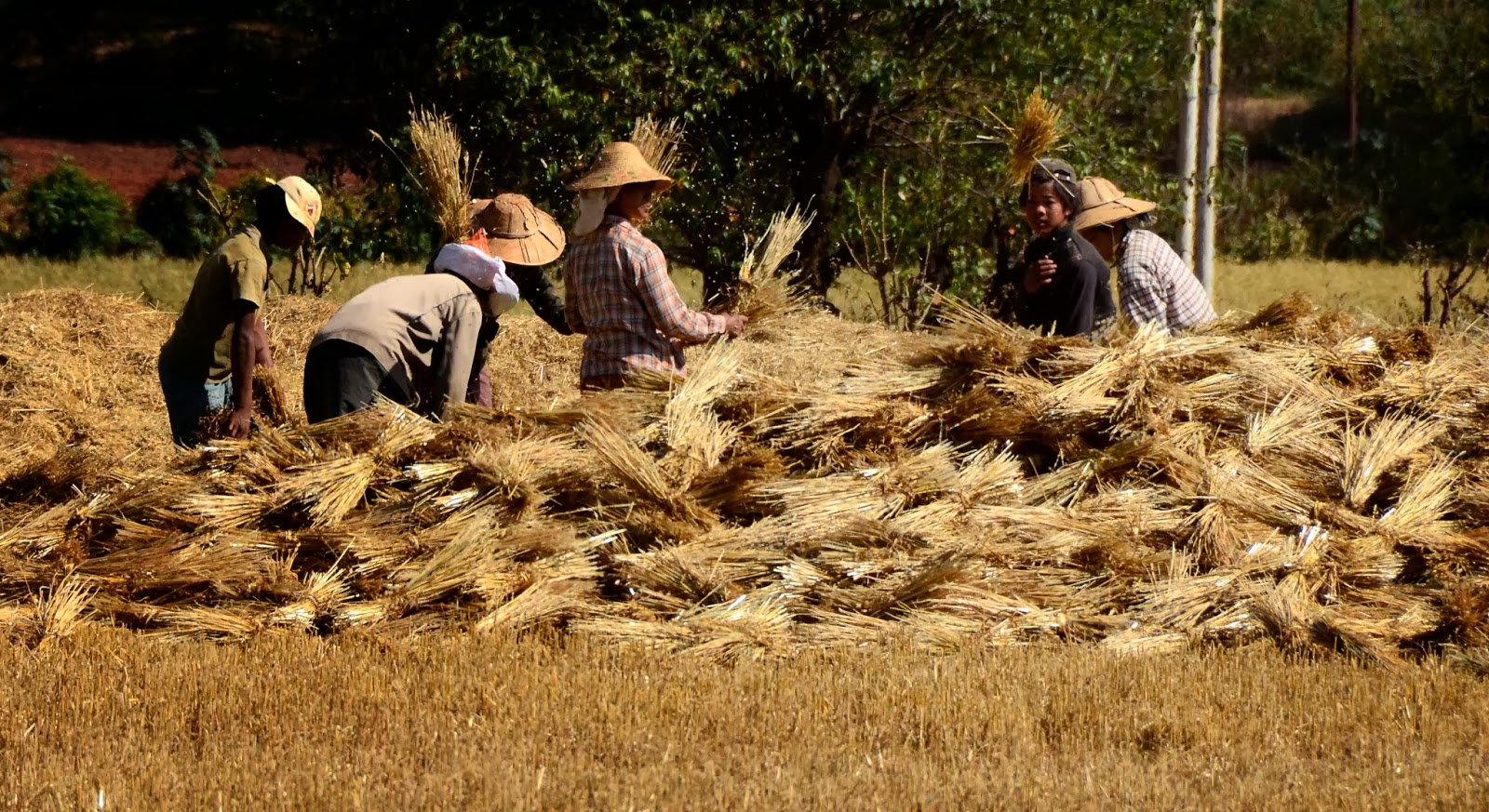 Men and women were madly banging wheat stalks on the ground that they had previously cut into 3-foot lengths.